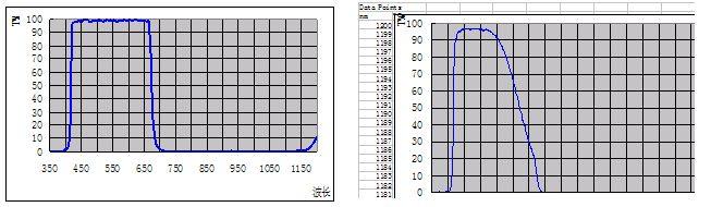 T=50% 短波長(cháng)側390(+10,-15)nm 長(cháng)波長(cháng)側640(+15,-10)nm