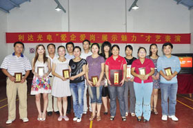 ??????? 8月27日下午,在利達光電機關(guān)一支部、二支部認真組織和團總支積極協(xié)助下,“愛(ài)企愛(ài)崗、展示魅力”才藝展示職工文化活動(dòng)在職工活動(dòng)室順利進(jìn)行;與此同時(shí),投影事業(yè)本部光機研究所在職工活動(dòng)室組織了一場(chǎng)青年職工趣味文化活動(dòng)。