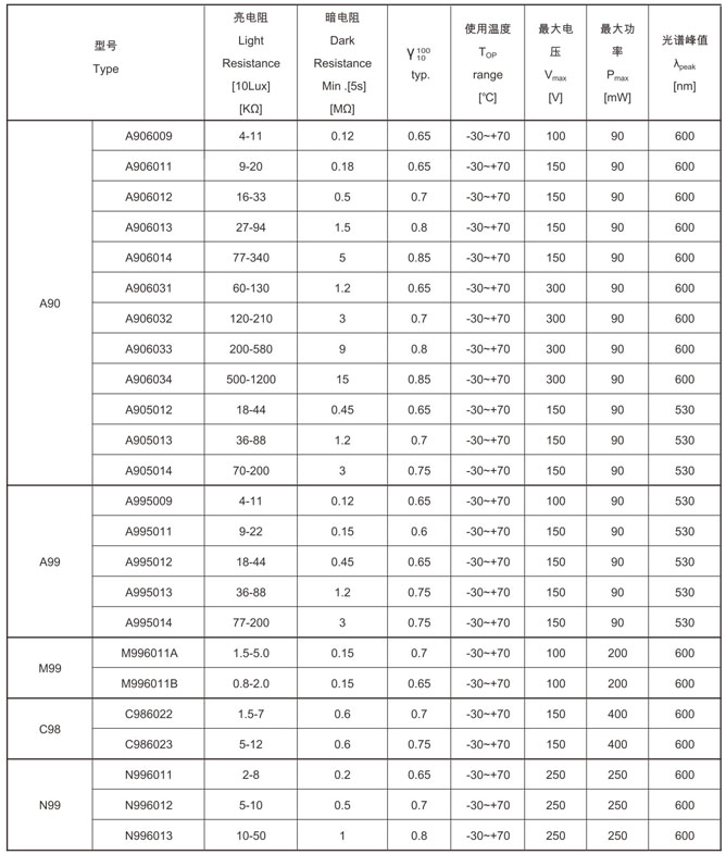 環(huán)氧樹(shù)脂封裝型光敏電阻系列2 Resin Package Photocells Series2