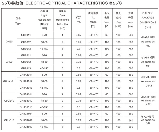 環(huán)保型光敏電阻系列當前位置:首頁(yè) >> 產(chǎn)品信息 >> 光敏電阻 >> 環(huán)保型光敏電阻系列